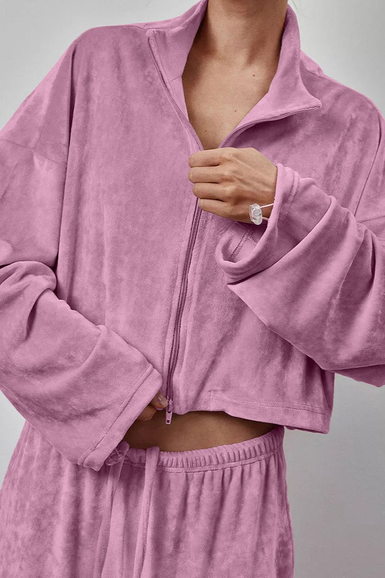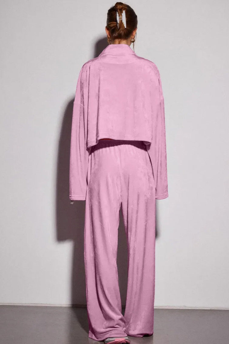 Vintage Drawstring Crop Top and Wide Leg Pants Two Piece Set
