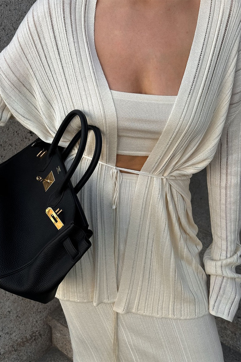 Vintage Ribbed Knit Cardigan and Cami Dress Three Piece Set