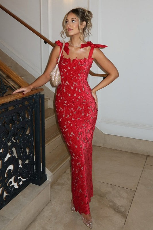 Sexy Hollow Out Slim Bow Lace Up Sleeveless Floral Dress