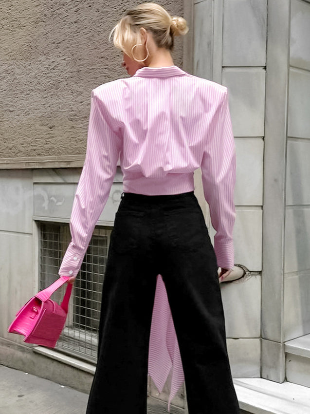 Striped Tie Waist Long Sleeve Blouse