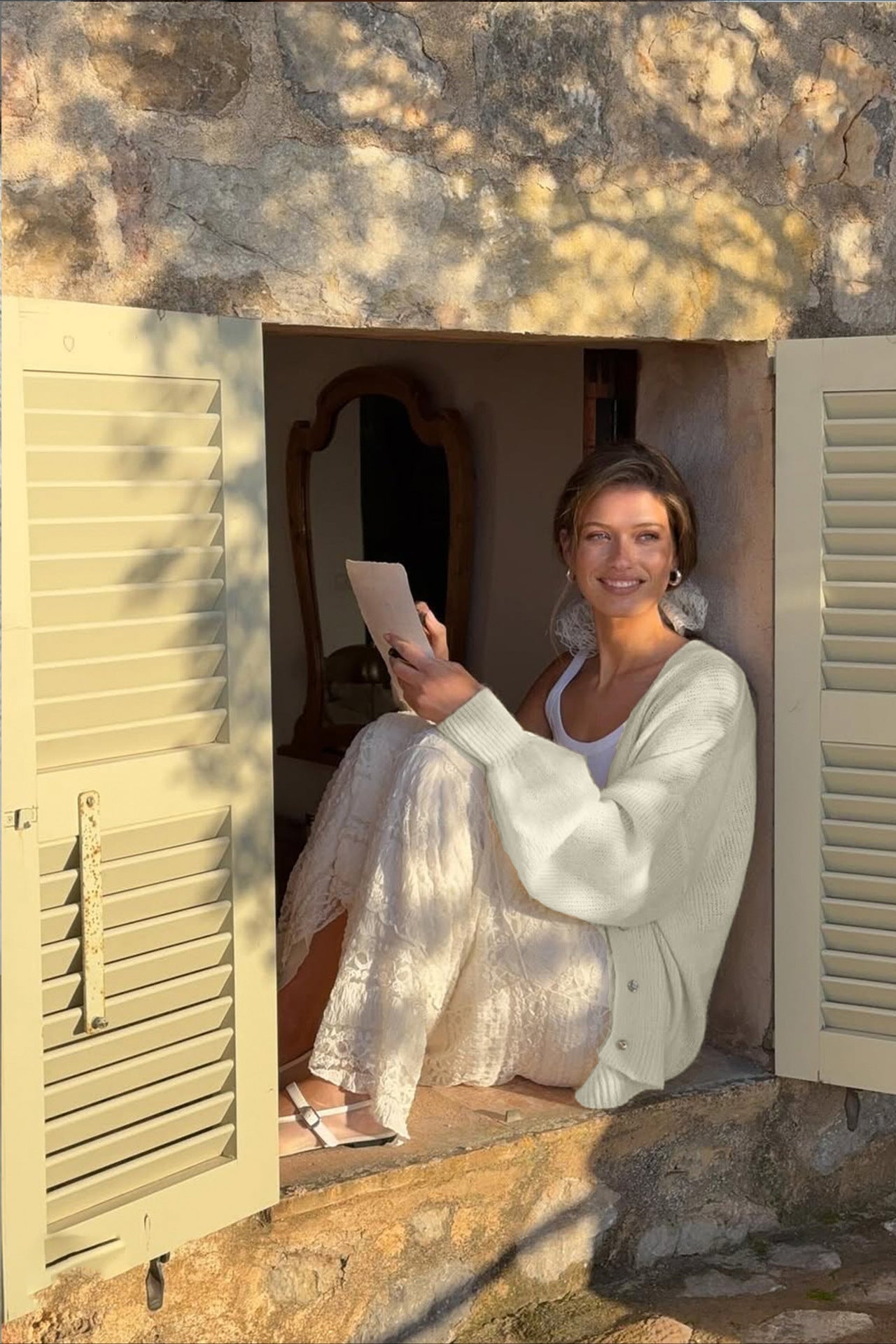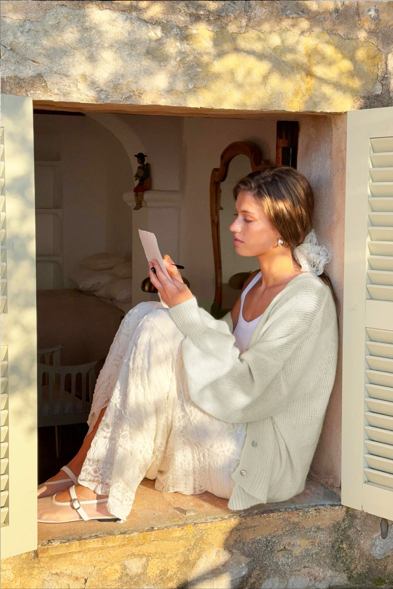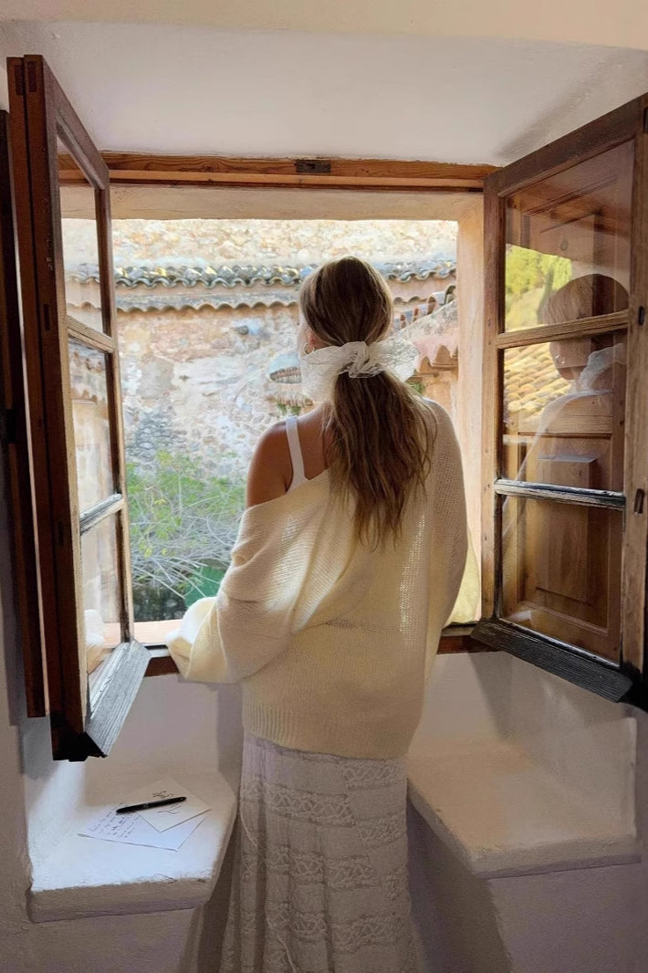 V-Neck Mohair Lace Bell Sleeve Cardigan