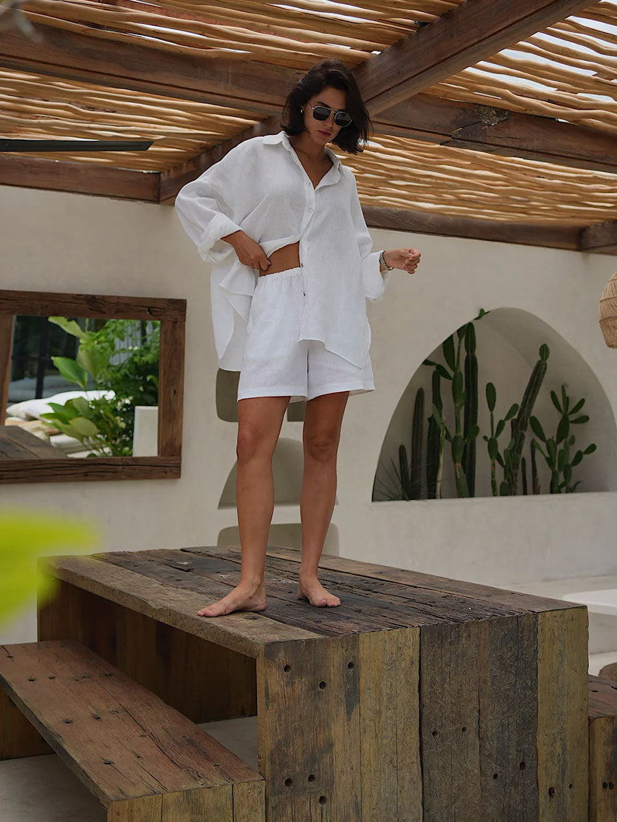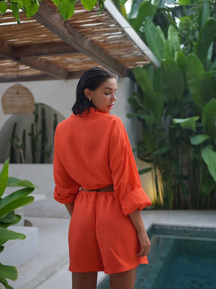 Long Sleeve Shirt Shorts Set Blouse