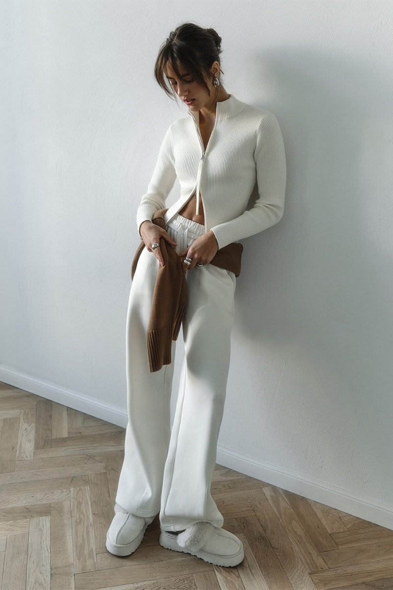 Knit Double Zipper Stand Collar Blouse