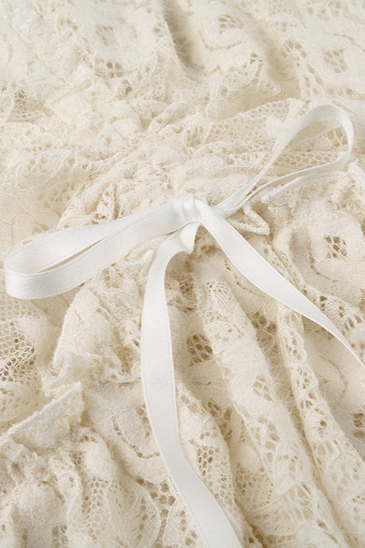 Ruched Lace Patchwork Midi Skirt