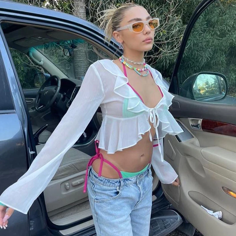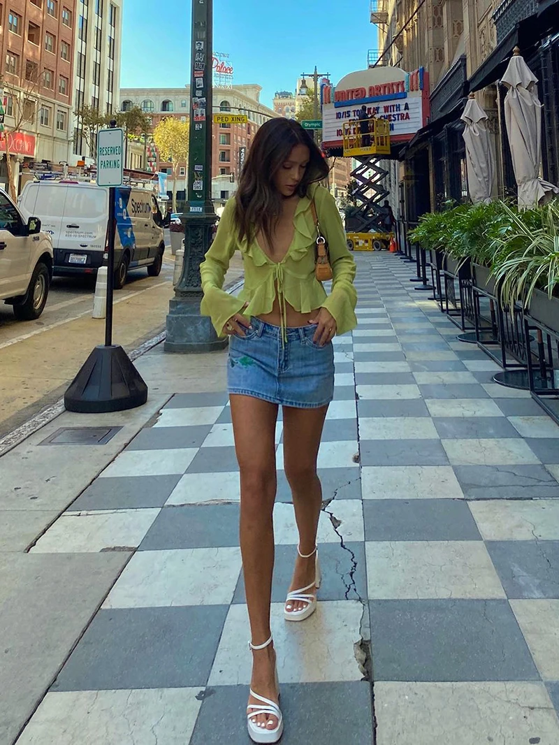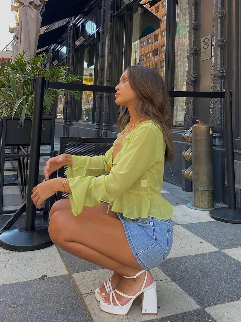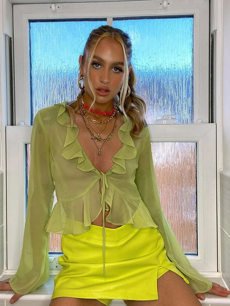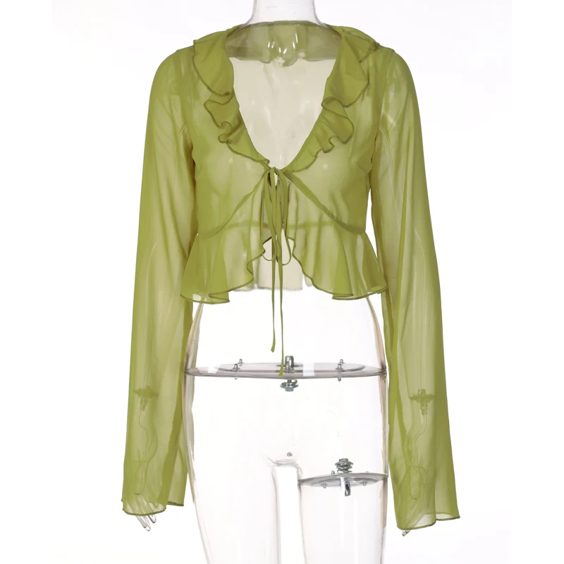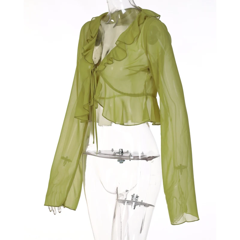 Trim Lace T-shirt 90s with Chiffon Ruffles Up and Vintage Green Detail