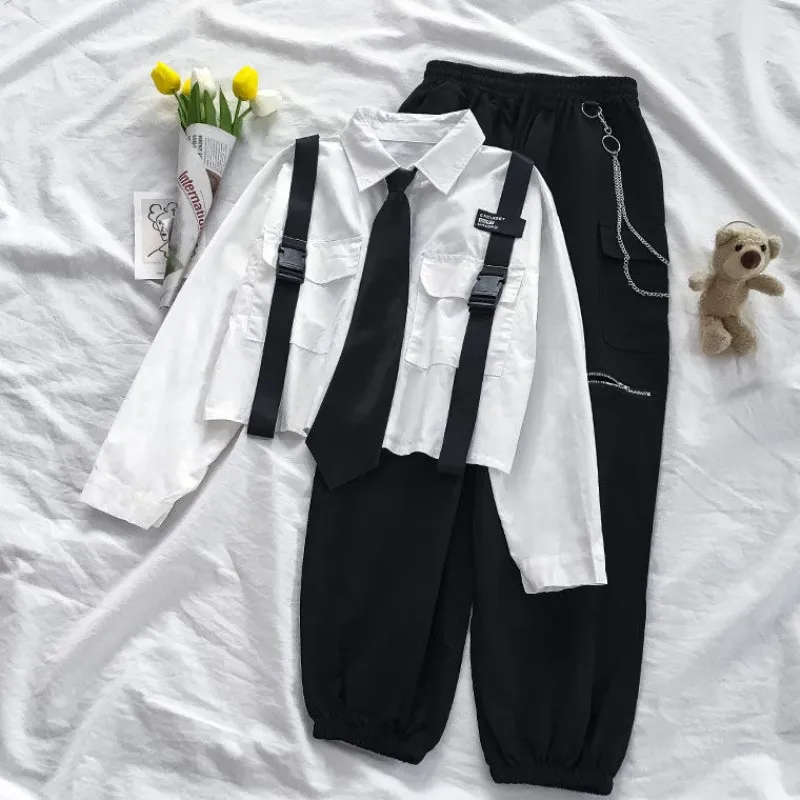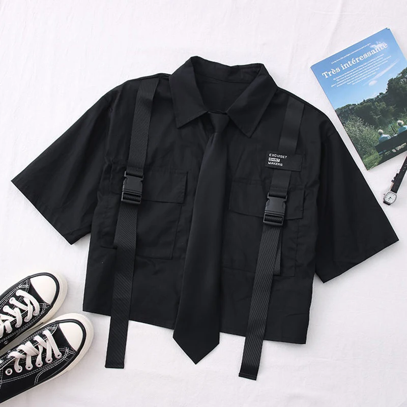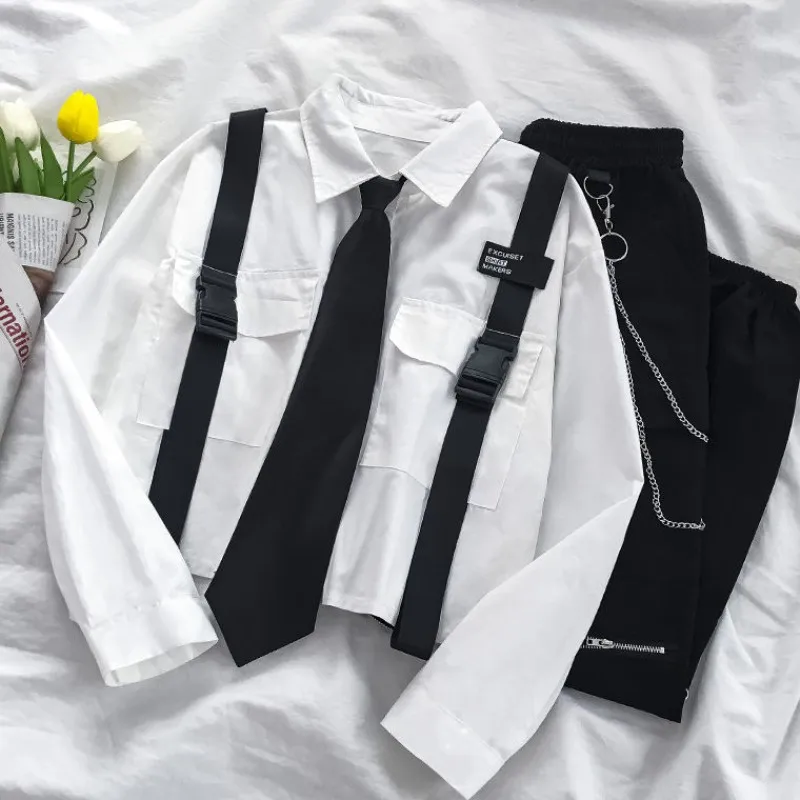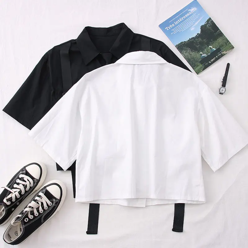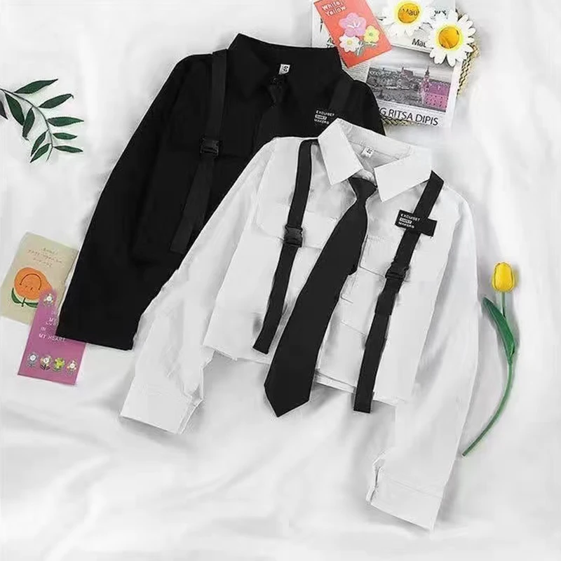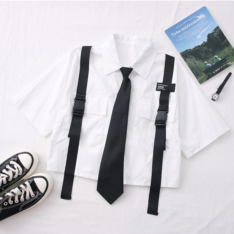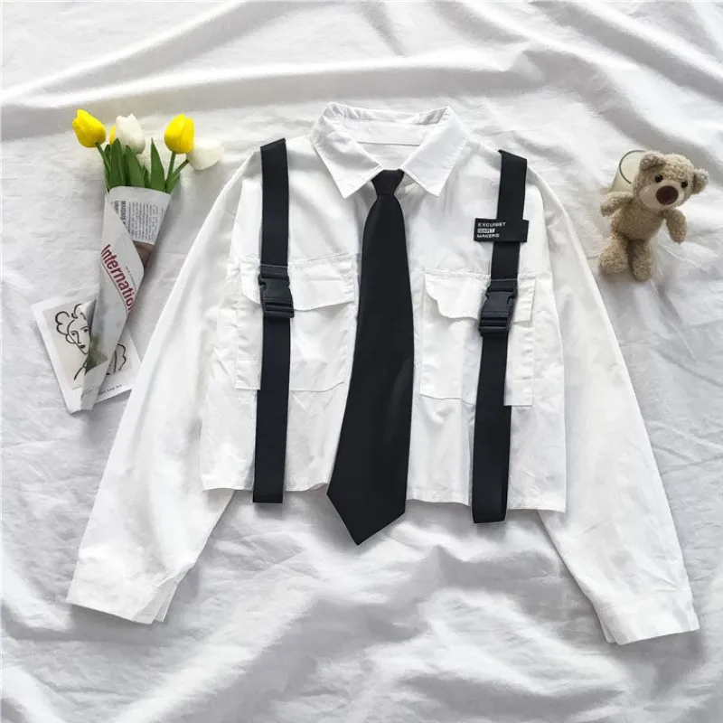 Women's 2024 Pocket Harajuku Top Casual White Tie Blouse