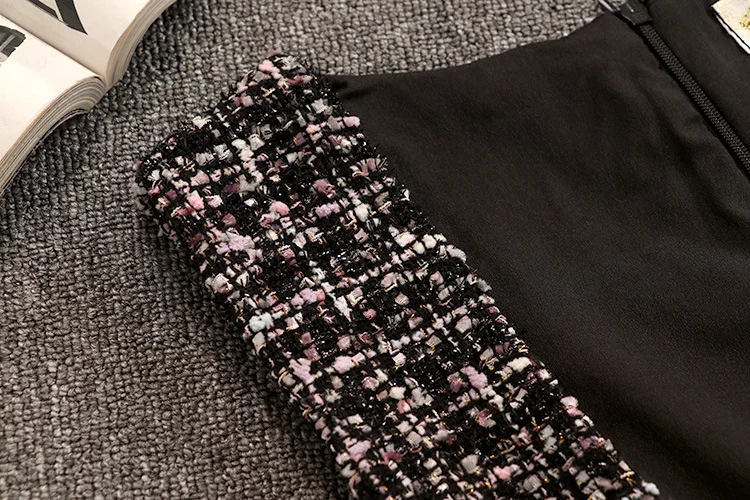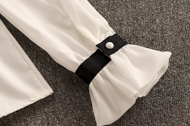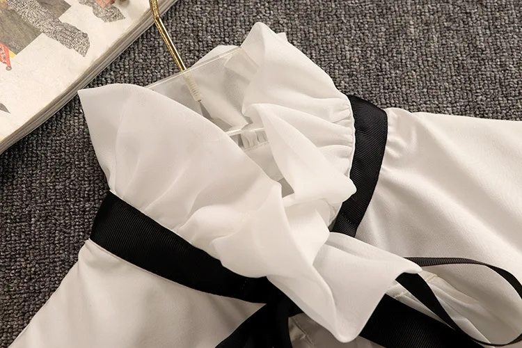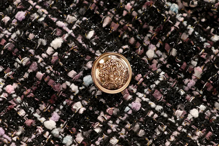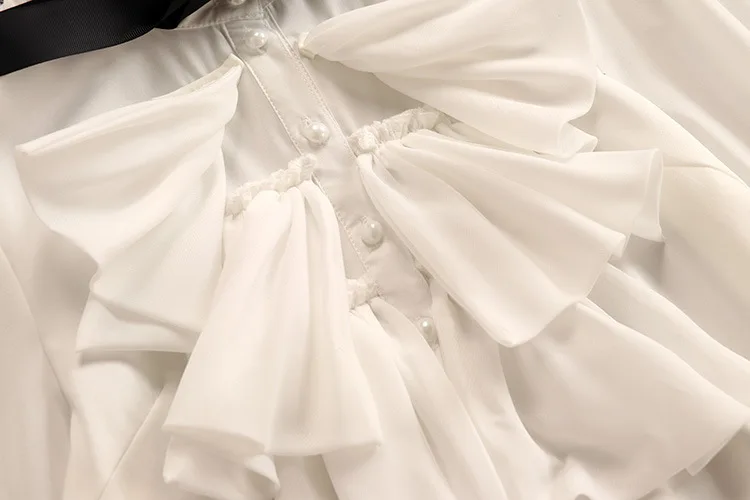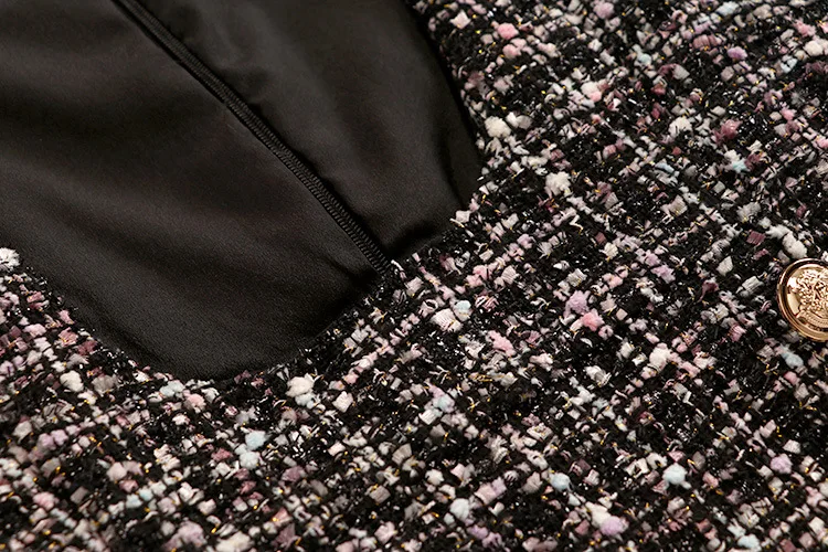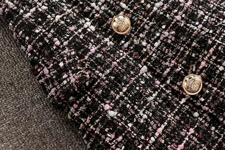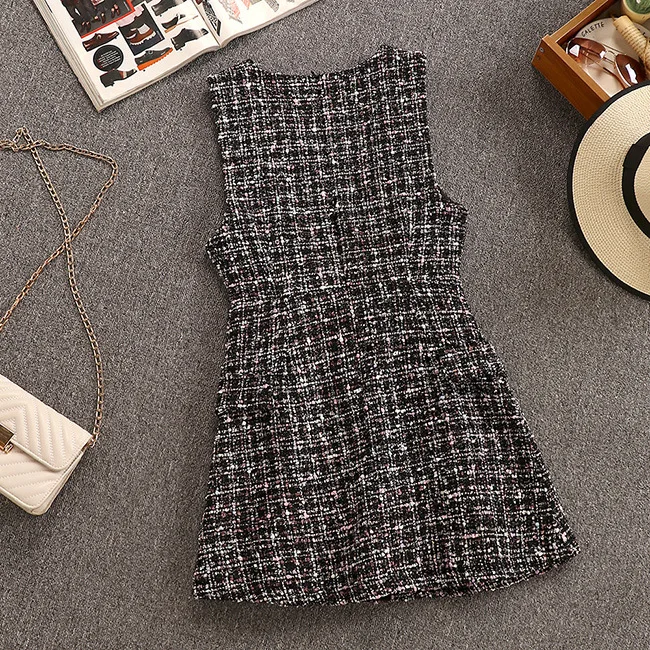 Tweed Elegant Gown Plaid + Chiffon Bow Top Double Breasted Vest Ruffles Blouse Set