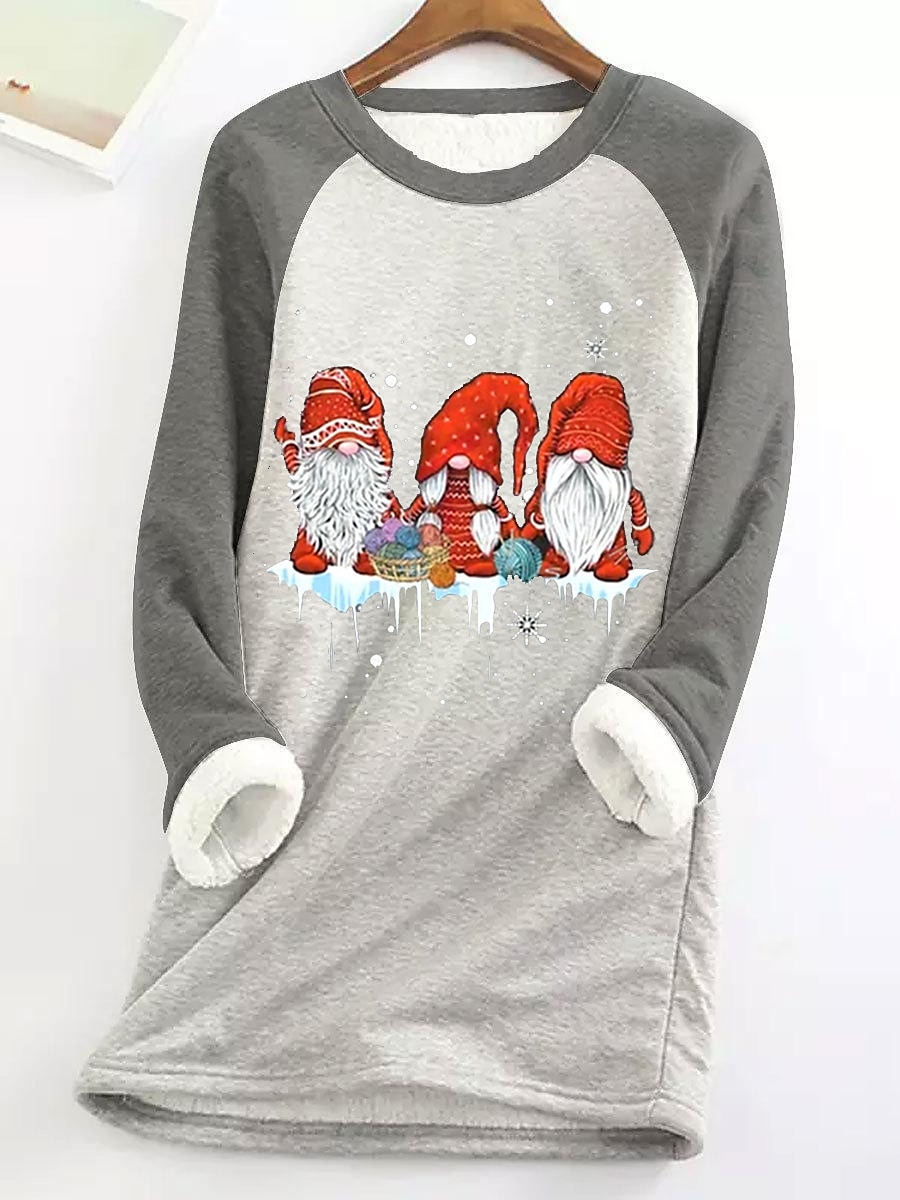 Women's Round Christmas Neck Fleece Long Sweatshirt - Sherpa Graphic Gray Green Teddy Pink Sleeve