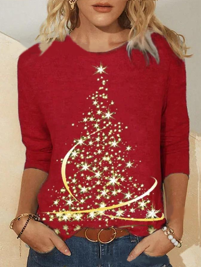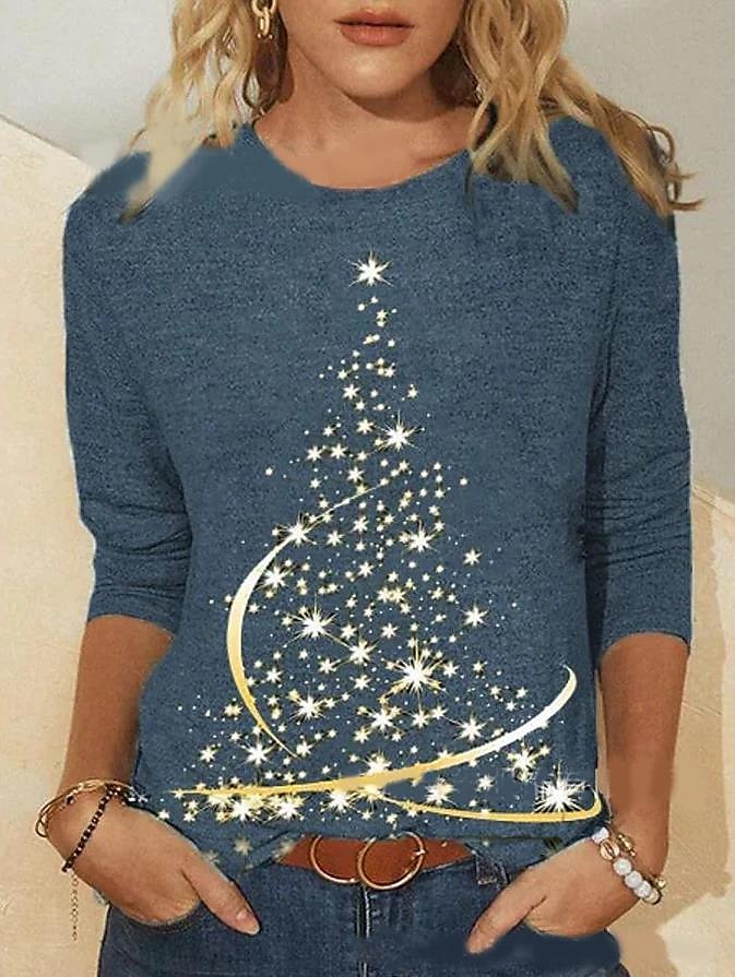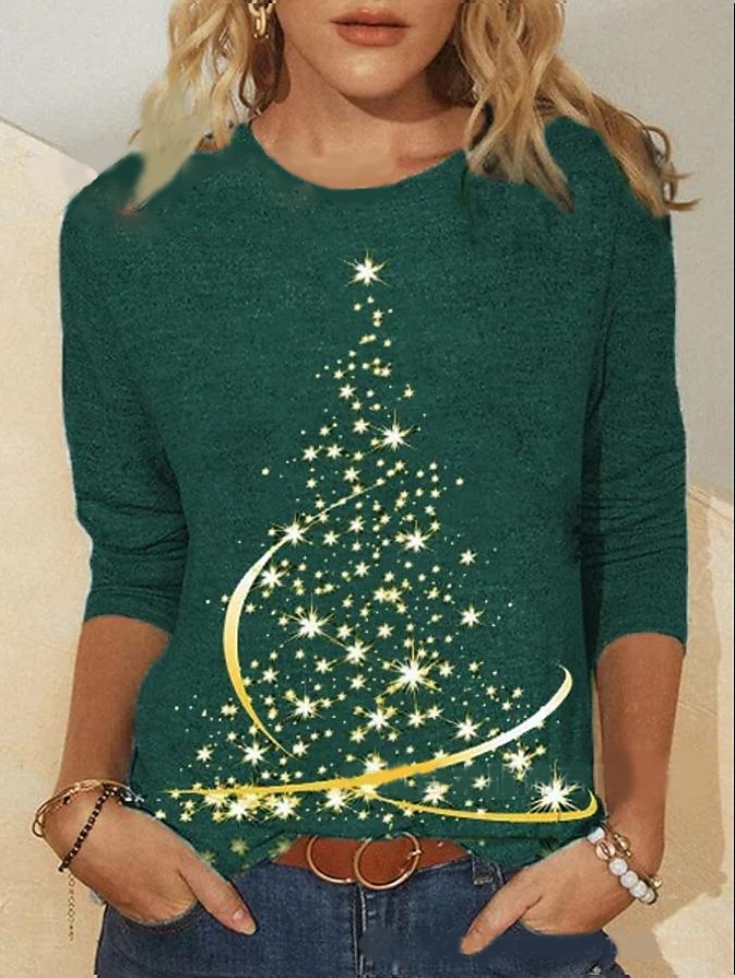 Gender:Women's,Style:Casual,Occasion:Christmas,Holiday,Tops Type:Shirt,Neckline:Round Neck,Fabric:Polyester,Design:Print,Details:Without Lining,Sleeve Length:Long Sleeve,Elasticity:Micro-elastic,Look After Me:Wet and Dry Cleaning,Washable,Top Length:Regular,Pattern:Christmas Tree,Season:Fall & Winter,Theme:Floral,