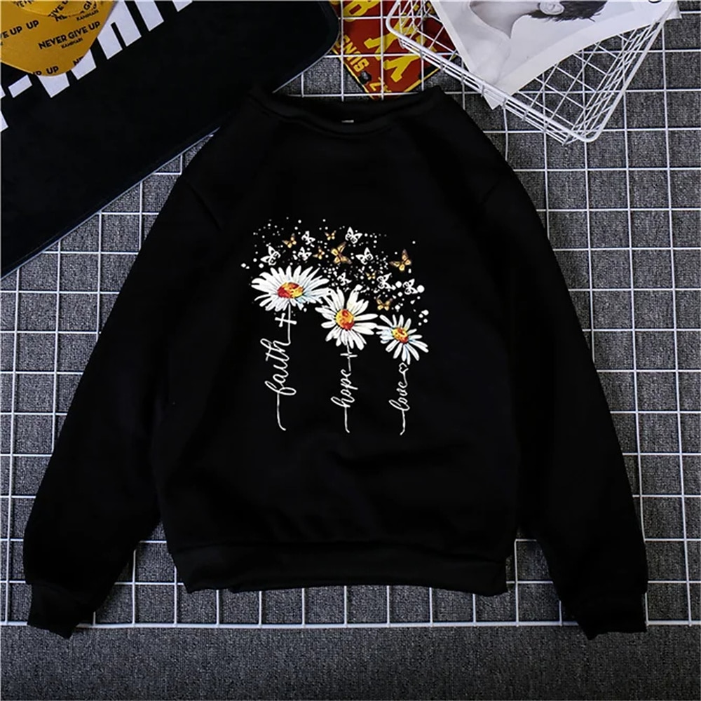 Gender:Women's,Style:Basic,Occasion:Casual,Street,Sports Clothing Sub Category:Pullover,Sweatshirt,Neckline:Round Neck,Fabric:Polyester,Sleeve Length:Long Sleeve,Elasticity:Micro-elastic,Look After Me:Washable,Wet and Dry,Machine wash,Top Length:Regular,Pattern:Butterfly,Floral,Season:Fall & Winter,Details:Top,Fit Type:Regular Fit,