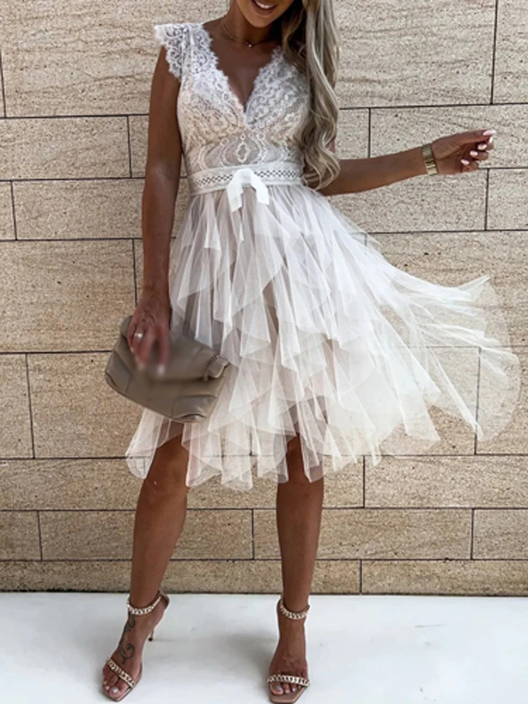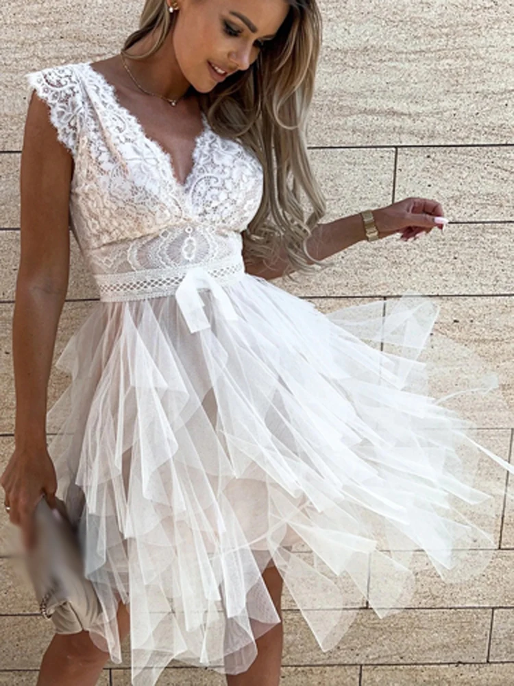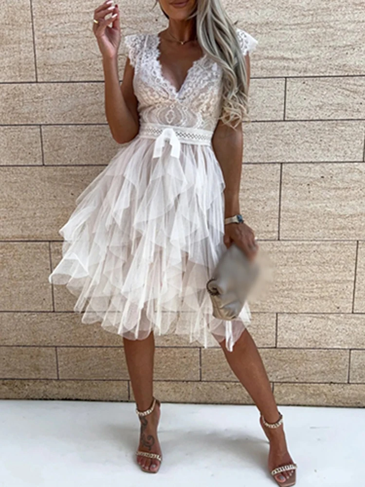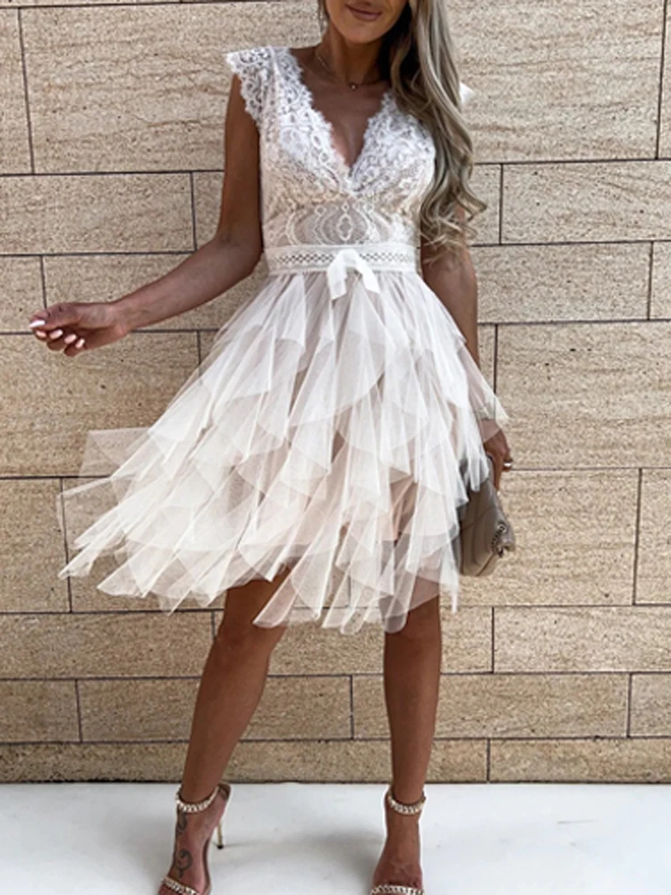 Backless Party Asymmetrical Sleeveless V Lace Gown Neck Warm-Season Patchwork Black Fit Hollow Slim - Out - Gown Sexy Dress