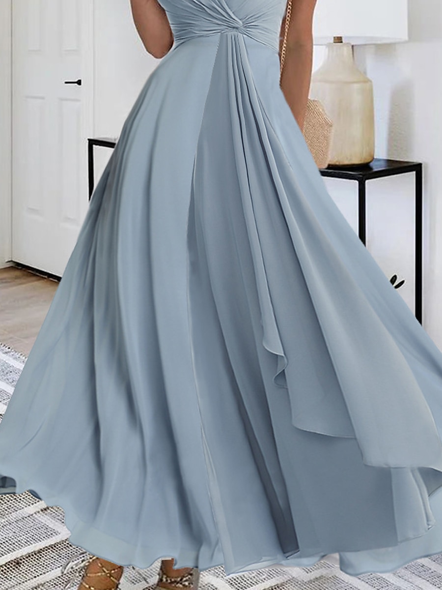 Gender:Women's,Style:Elegant Dress,Mature,Fashion,Party,Occasion:Summer Dress,Wedding Guest,Special Occasion,Going out,Evening Party,Dresses Type:Wedding Guest Dress,Prom Dress,Party Dress,Swing Dress,Neckline:V Neck,Fabric:Chiffon,Design:Knot Front,Layered,Elasticity:Micro-elastic,Pattern:Pure Color,Season:Fall,Summer,Spring,Autumn,Fit Type:Regular Fit,Dress Length Type:Long Dress Maxi Dress,