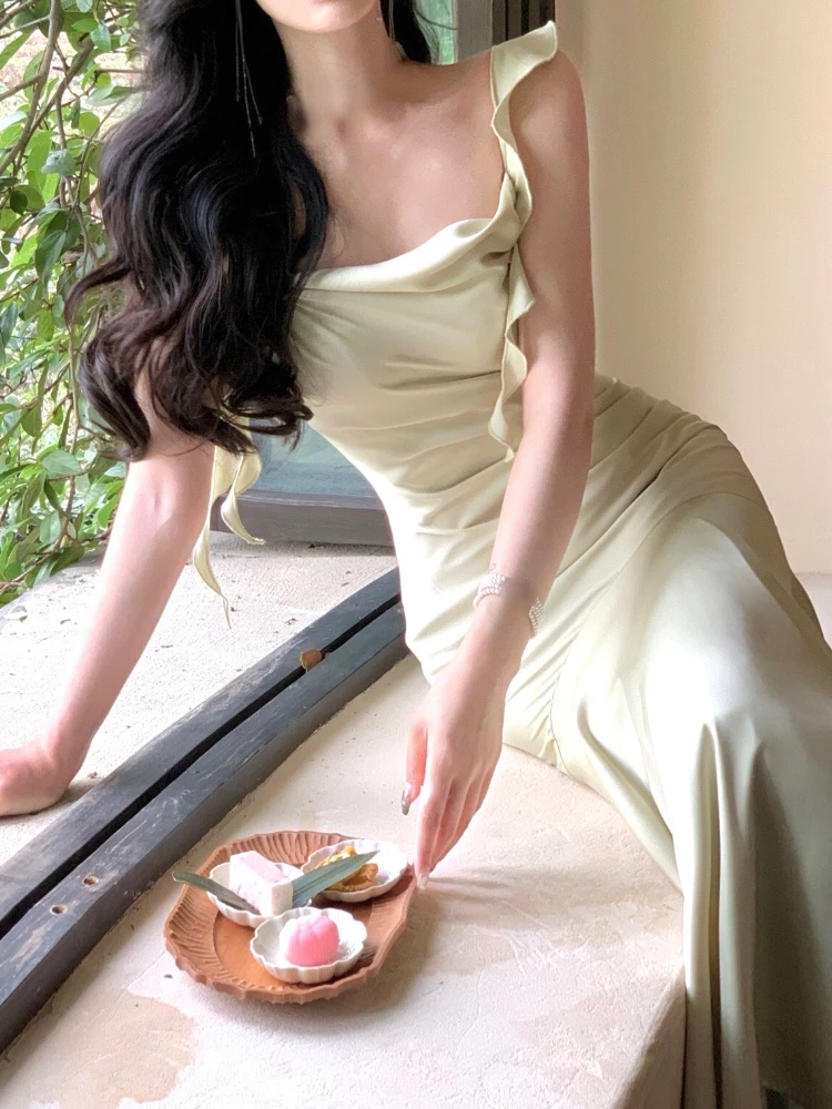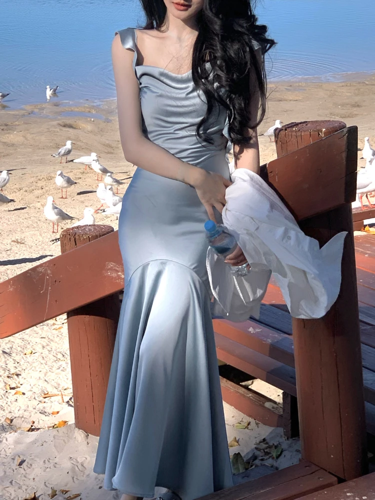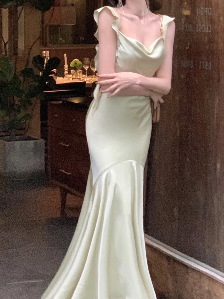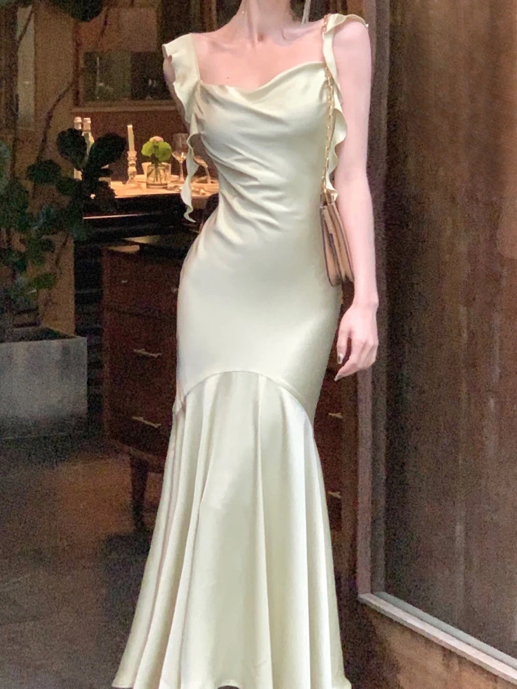 Strap Vintage Gown - Party Elegant Satin Midi Korean - Casual Gown Fashion