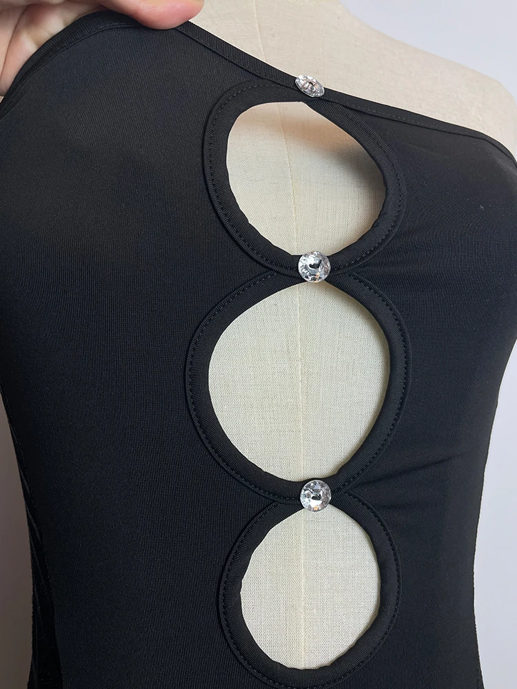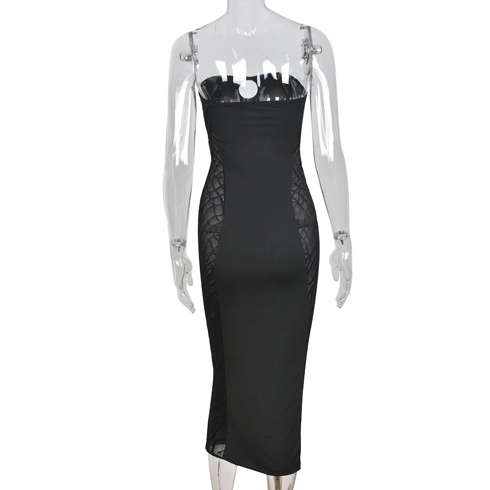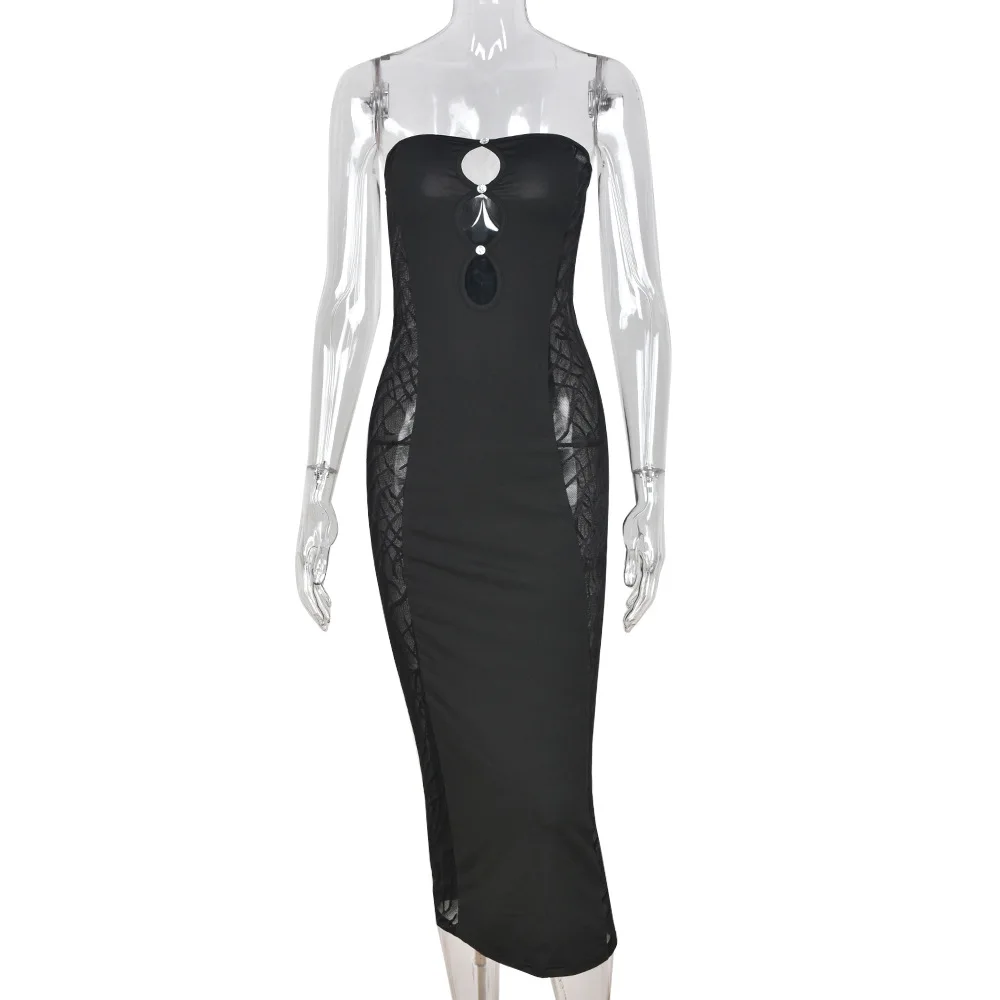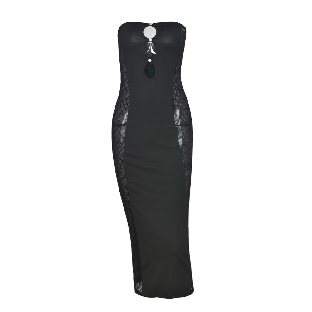 Black Lace Sexy Party Dresses Women Knee-Length Skinny Hole Hollow Out Backless Tube Strapless Sleeveless Summer Dresses