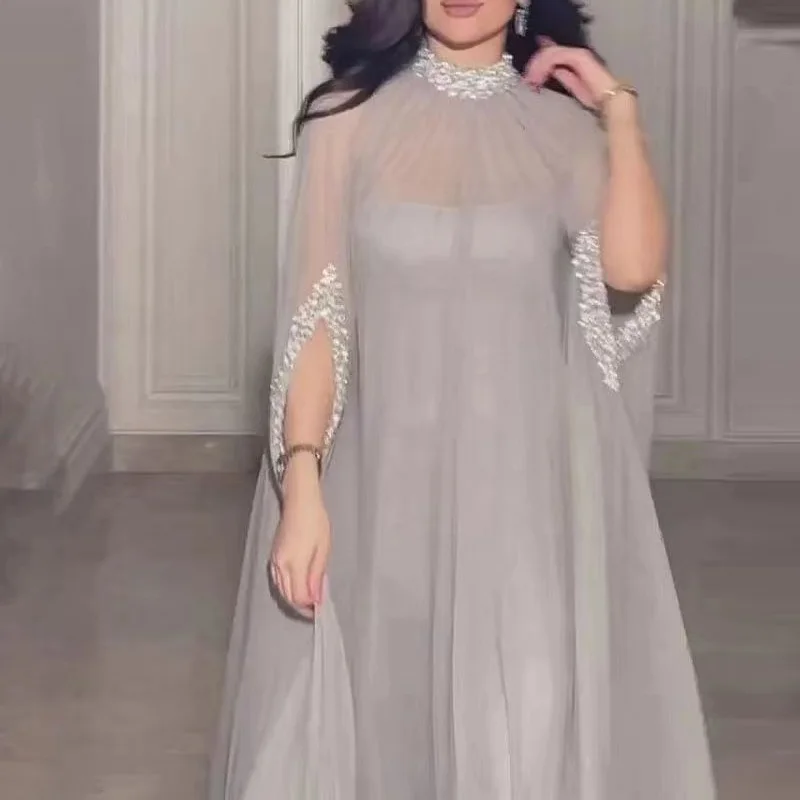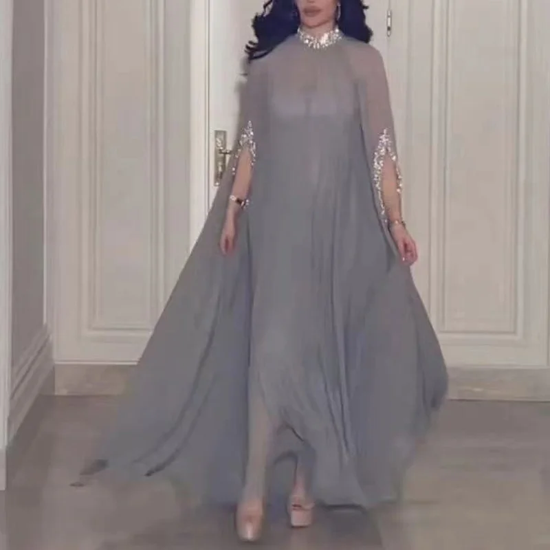 Warm-Season with - Batwing - Loose Large Pullover Chiffon Gown Casual Patchwork Party Gown Sleeves Size Sequin for Women