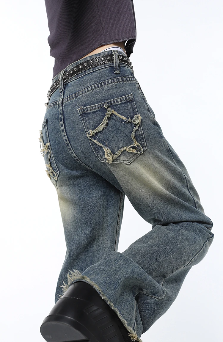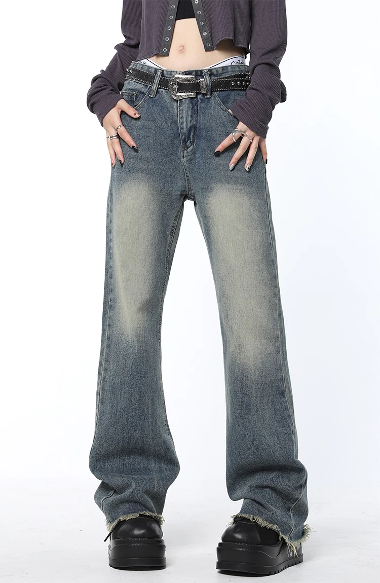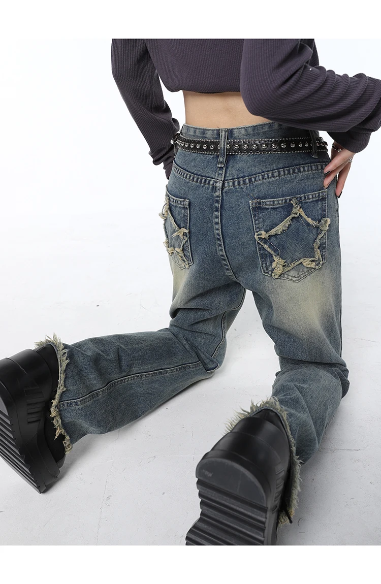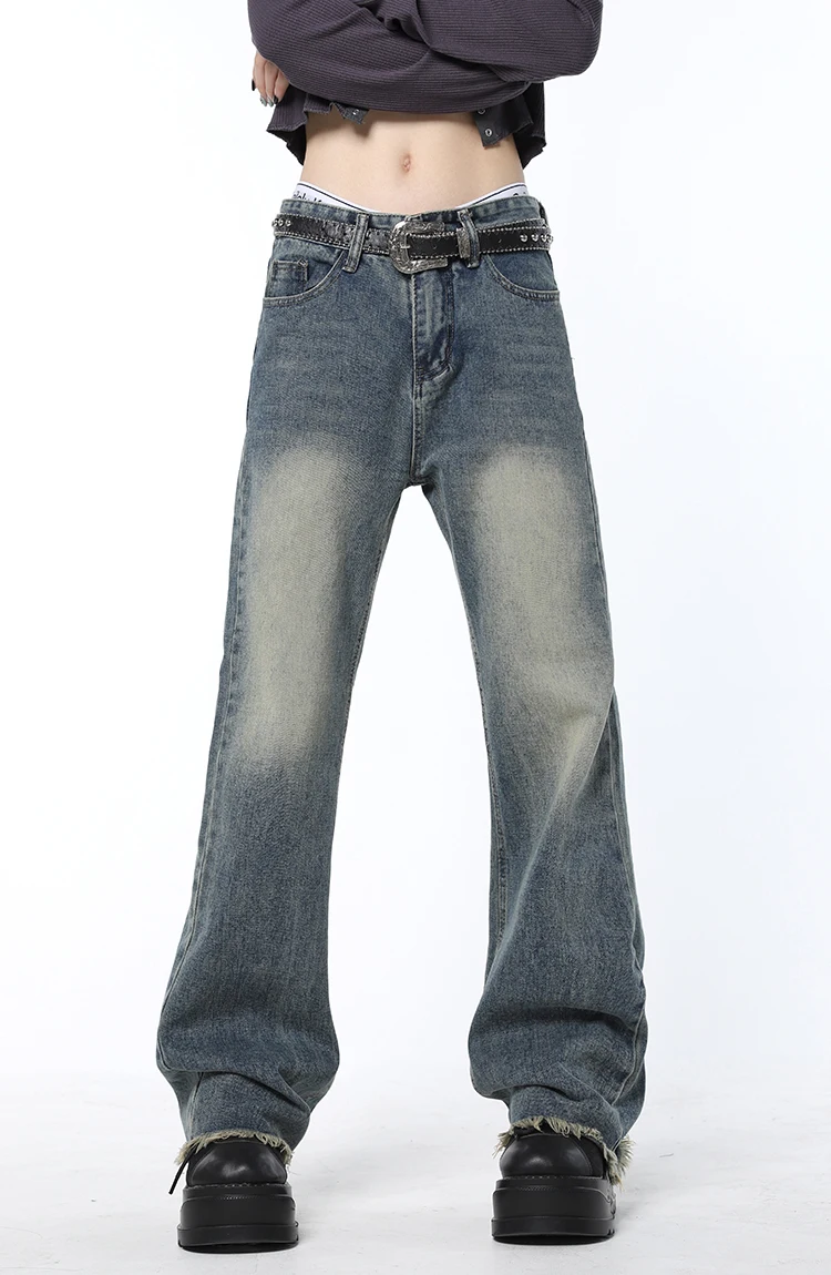 American Women Jeans Waist Baggy Fashion Jean High Wide Blue Leg Vintage Trouser Denim Streetwear Straight Female Pants