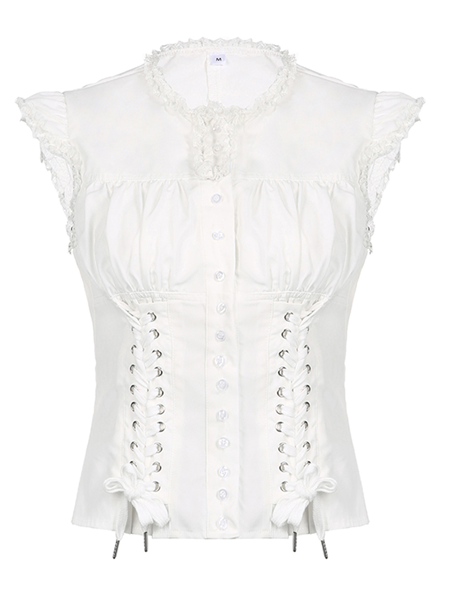 Vintage Lace Trim Cap Sleeve Bandage Crop Top